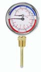 Tridicator Gauges, specifically designed for hot water boilers, are two gauges-in-one. They measure water pressure in PSI and kPa, plus temperature in °F and °C. The large square and round dials are easy to read with a pressure accuracy of ± 3-2-3% of full scale and temperature accuracy of ± 2% of full scale.