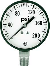 General purpose gauges suitable for use on pressure media that are non-corrosive to brass or bronze and where stem mounting is desired. Easy-to-read standard PSI dial with large black numerals on white background. Recommended for use with air, oil, compressed gas and water service. Gauges over 1000 PSI UL Listed (except 5000 PSI). |